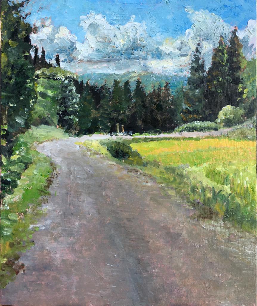 初めまして…油絵の具の発色の良さを生かせていて素敵ですね!空の描きかたが夏だと感じさせてくれる様に描かれているところも素敵だと思います!!