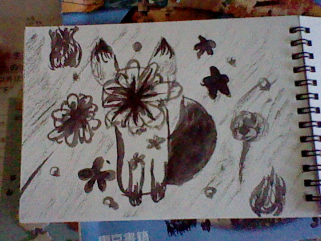 狐描いたんだけど顔が描けなかったからお花描いたんだ。(((