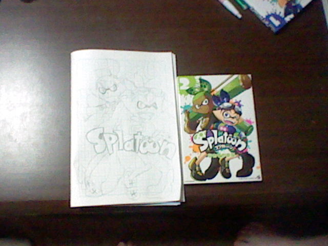 見えるかな?妹がコロイカの漫画の表紙を描いてたからあげてやったのさ((