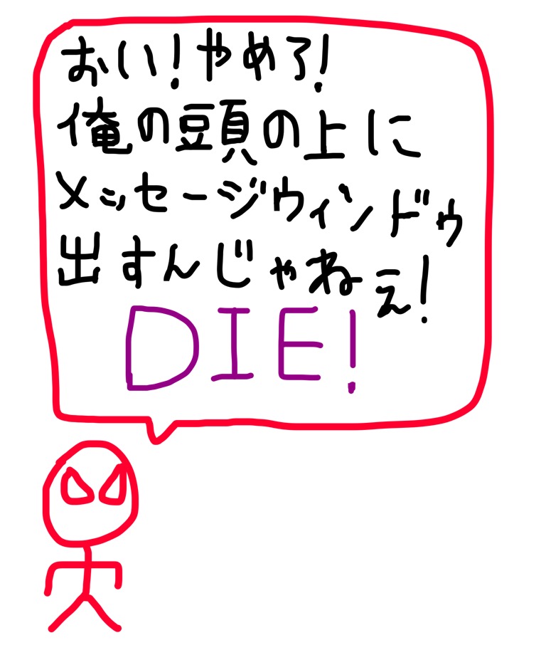 おいやめろ!俺の頭の上にメッセージウィンドウ出すんじゃねぇ! (2018年7月21日 23:12:06) [ID: 2de30979] 画像ID: