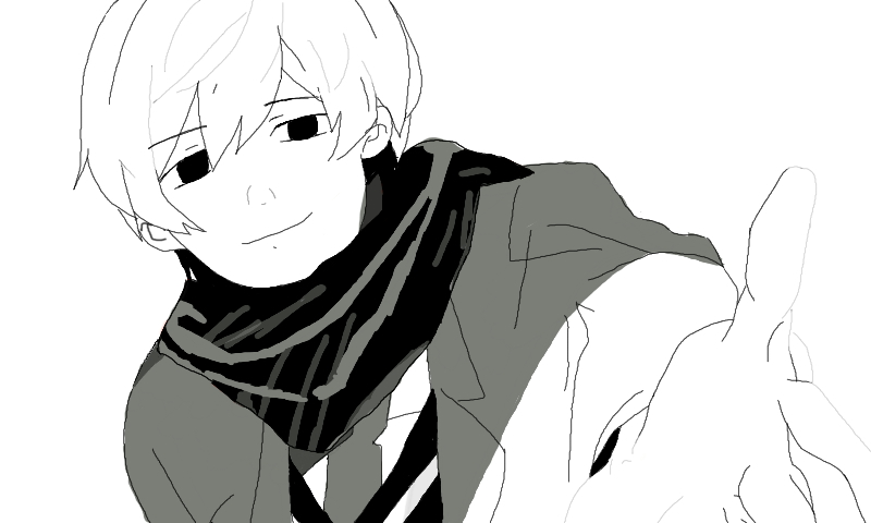 満面の笑みバージョンていうか、下書きでは、黒髪でザザッて無造作な感じのヘアスタイルだったんですけど、奇病患ってんのに、笑顔は無いかなって、時計描きたいなって思ったらこうなってました