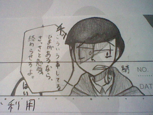 黒刃* _. 課題 、勉強 しないから チョロ松 が 怒りました .。 (2018年9月13日 16:31:42) [ID: f31cd58d] 画像ID: