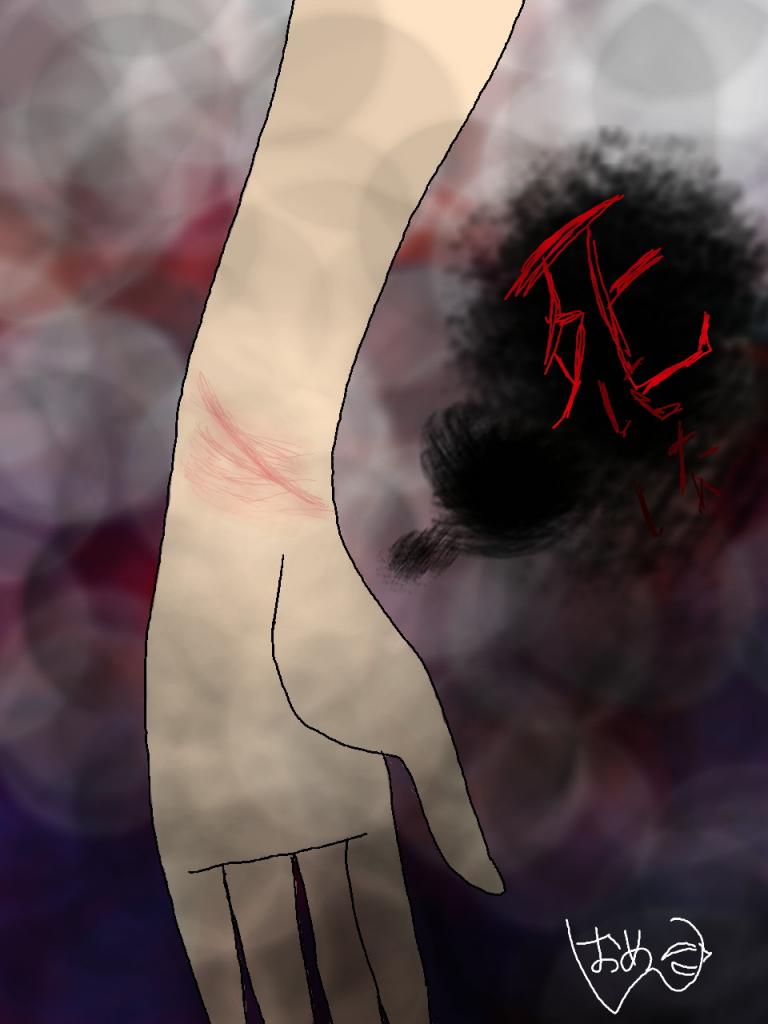 御面 ._ ※ 病み、リスカ 表現 有 ※ 自傷したい欲は有るのに、痕しか付けれなくて…。だから、絵で発散。( 謎 ) (2018年9月27日 19:58:53) [ID: 04ae55bc] 画像ID: