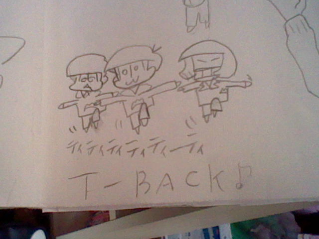 はぁい。本日テストが終わりまたksがやって来ました。あ、画像は『T-BACK』っていう歌に会わせて描いたやつ。(チョロろんの頭はリア友が描いたよん)またよろしゅうお願いいたしますぅ←