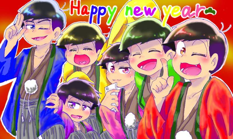 おそ松さん 年賀状 戌年 おそ松 カラ松 チョロ松 一松 十四松 トド松 (2018年10月28日 10:13:04) [ID: 7cef37fe] 画像ID: