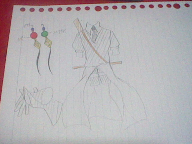 腰と背中に刀があります。