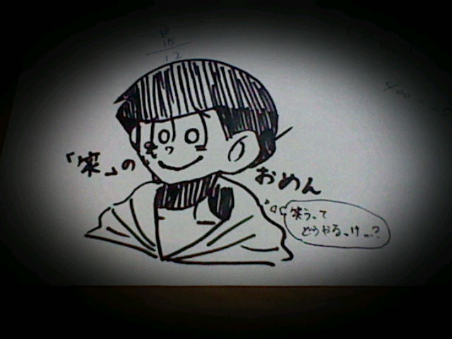 ▲ サムネは適当に描いた( 油性マジックペン )、「笑」のおめん × 十四松です。