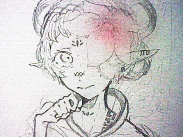 ちなみに、前から見たらベリーショート、後ろは腰上辺りまである紙を輪にして後頭部で留め、花型にしてます。
