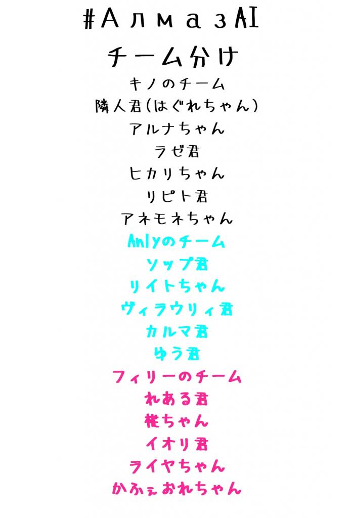 とりあえずチーム分けしました、入ってなかったりしたら言ってくださいな!!!!!