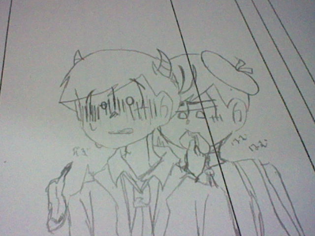 御面 ._ 深夜てんそんで描いた カラおそ ( 神父×悪魔 ) … こんな時間にあげる馬鹿がここにいます。(( (2018年12月25日 16:23:22) [ID: 0fa4d245] 画像ID: