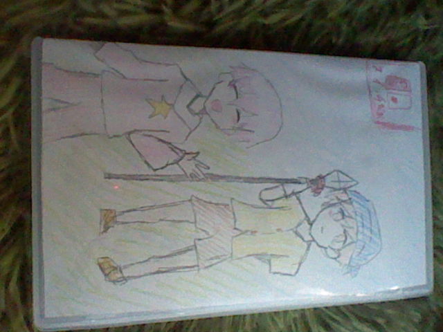 『じゃあなんか描いて』って(弟に)言われたから、この2人のノーマルver.(裏に描いた)と擬人化ver.描いたった。(姉弟2人してカービィ大好き)