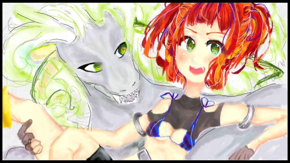 左にいる動物(どらごん?)みたいなの初めて描いたので、へたっぴです。。