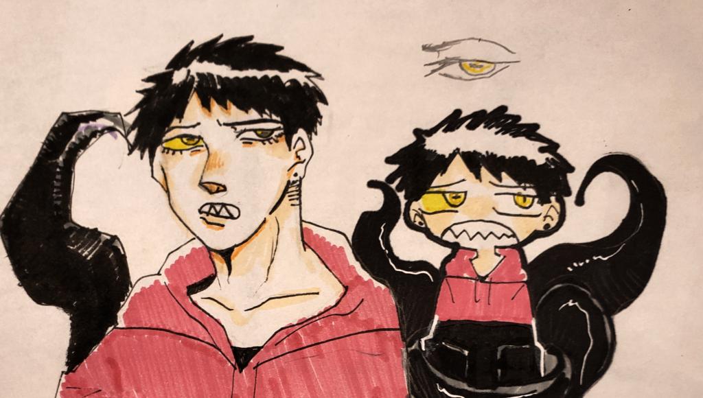 異形:尾てい骨からタコのような触手が6本生えている。右目の白目部分が黄色。