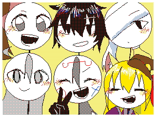 左上(ひとみちゃん)理科の授業中に出てたテレビの人をモチーフに友達と作った子。おふざけ半分でつくったからすまないと思ってる。