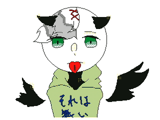 容姿:ピンで止めてる左流しの銀髪、ピンは赤色。黒の角と片方破れてる(?)黒い羽、飛べない。