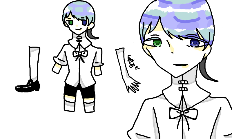 緑色、青色、紫色を中心に色が構成されている髪。