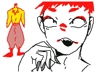 変なメイク。見えないけど膝から下が黒い。爪長くて鋭い。