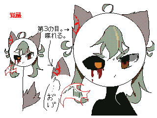 通常よりも毛先等が跳ね 、色も全体的に違う 。目にあった謎の模様が無くなってる変わりに 、目がが片方だけ黒くなり 、血の何かを流している 。