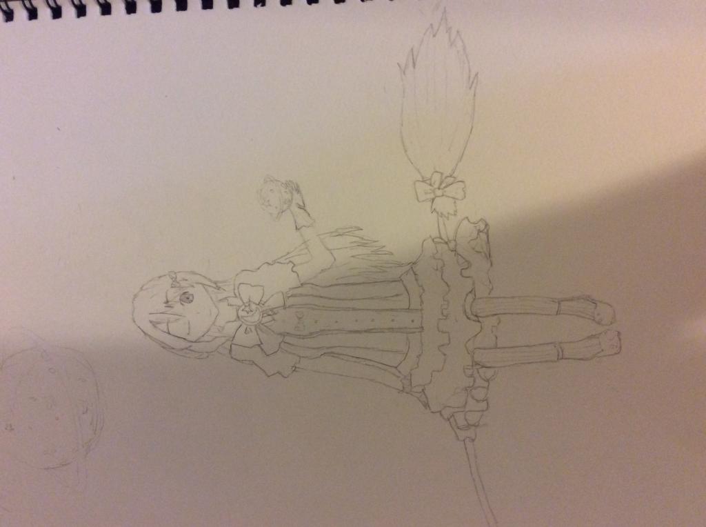 気のせいかな?箒細いと思うんだけど…、あと輪郭と下半身に違和感あるよ。足自体は上手いと思う