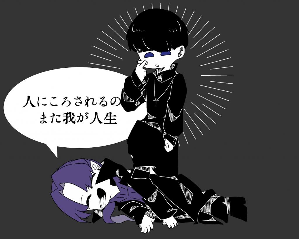 ヤッターーー!!!ちゃんと自分に刺さりながら描いたので描き終わった瞬間死にました!