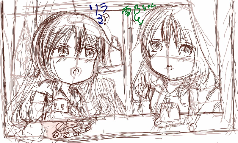 リラが家の子、雪乃ちゃんはネッ友の子 。多分何か思い付いて出窓のカーテンと窓開けながら何か話す雪乃ちゃんの話を興味津々に聞いているリラ、というところですね … 、()