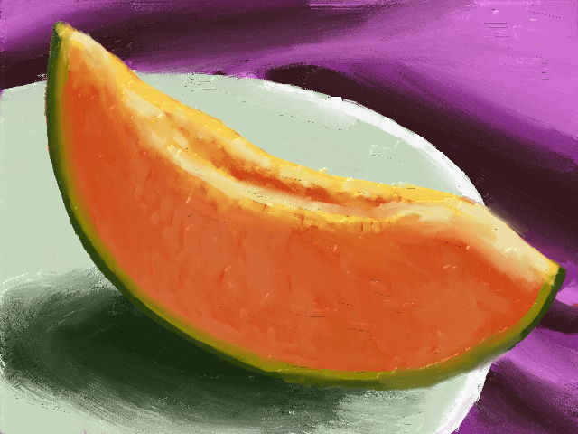 レッスンで描いたメロンをグラデ強くしたり、色々アレンジしてみました
