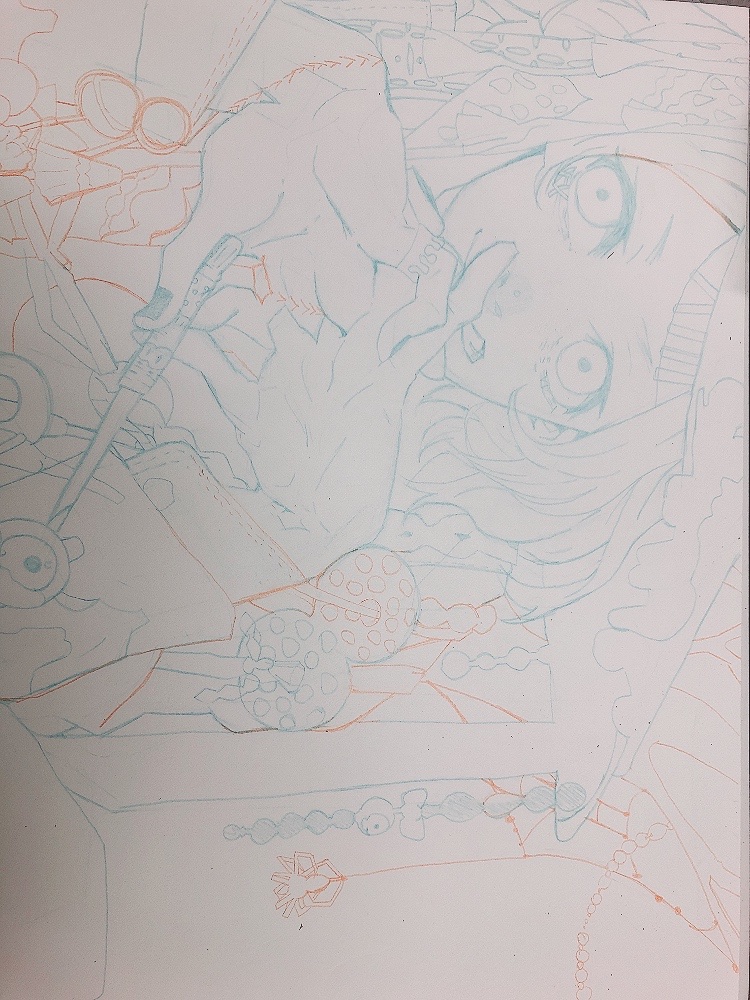 ごちゃごちゃした感じの模写初めてだから頑張って描いてる